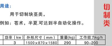 本機器型號一種厚度可調的息半夏切片機,包括支撐座,支撐座的上表面開設有第一凹槽和第二凹槽,第一凹槽與第二凹槽之間設有切片臺,第一凹槽和第二凹槽內均設置有夾緊裝置,切片臺的一側設有調節刀架,調節刀架包括固定柱,手柄和刀板,固定柱的一側開設有限位槽,手柄的一端滑動于限位槽內,手柄的另一端固定于刀板的側壁上,刀板上均勻設有多個刀片固定槽,每個刀片固定槽內均設置有切片刀,通過夾緊裝置可對要切片的息半夏顆粒進行夾緊,方便操作人員進行切片動作,操作人員通過調節刀架可以根據實際需要間隔取出相應的切片刀來調整切片刀的數量,從而控制相鄰兩個切片刀之間的刀距,達到控制切片厚度的目的,結構簡單,操作方便.