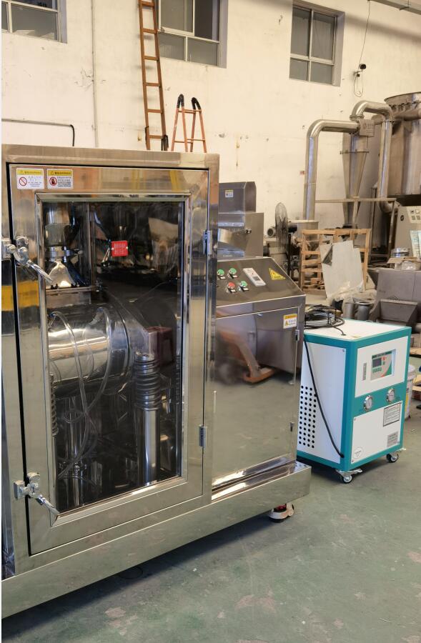無環(huán)境污染。 細(xì)胞破壁機(jī)系列設(shè)備具有以下特征 1、安全性強(qiáng):與物料接觸的部位均為拋光不銹鋼,其材質(zhì)為國際醫(yī)藥食品機(jī)械通用材質(zhì)(也可根據(jù)用戶要求改為其它金屬材質(zhì))。 2、潔凈衛(wèi)生:內(nèi)外面平滑、一機(jī)多用、減少污染、減輕洗凈作業(yè)負(fù)擔(dān);粉碎過程全密閉無粉塵溢出,充分改善作業(yè)環(huán)境,有效成份不損失。 3、采用復(fù)合(透明)隔聲罩,具有降噪功能。 4、易拆卸(組裝)、易清洗、易換料。可用水、壓縮空氣、酒精、蒸汽等清洗、消毒。 5、操作簡便:容量適配、確保物料完全排出,操作和換料簡便。 6、維護(hù)方便:結(jié)構(gòu)緊湊、占地面積小,維修養(yǎng)護(hù)方便。 7、改善環(huán)境:全密閉作業(yè)無粉塵溢出、有效成份不損失、無藥渣產(chǎn)生,可改善工作環(huán)境。 8、提高效率:高速撞擊力和剪切力的雙向作用,極大地縮短了粉碎時(shí)間,提高粉碎效率。 9、廣譜適應(yīng):對(duì)于任何纖維狀、高韌性、高硬度或有一定含水率的物料均可適應(yīng)。對(duì)花粉及其它孢子植物等要求打破細(xì)胞壁的物料,其破壁率高于95%。同時(shí)適應(yīng)干式和濕式粉碎。濕式粉碎時(shí)可加入水、酒精或其它液體。 10、溫度可控:通過配置可進(jìn)行高溫、常溫、低溫或超低溫的微粉碎,可以保持物料的原有理化性質(zhì)和活性成份。給磨筒外壁的夾套通入冷水。通過調(diào)節(jié)冷卻水的溫度和流量可控制粉碎溫度。低溫粉碎,冷凍系統(tǒng)最低溫度可達(dá)零下35℃(高檔低溫配置)。[冷凍系統(tǒng)另外購買,標(biāo)配為水冷降溫。]
